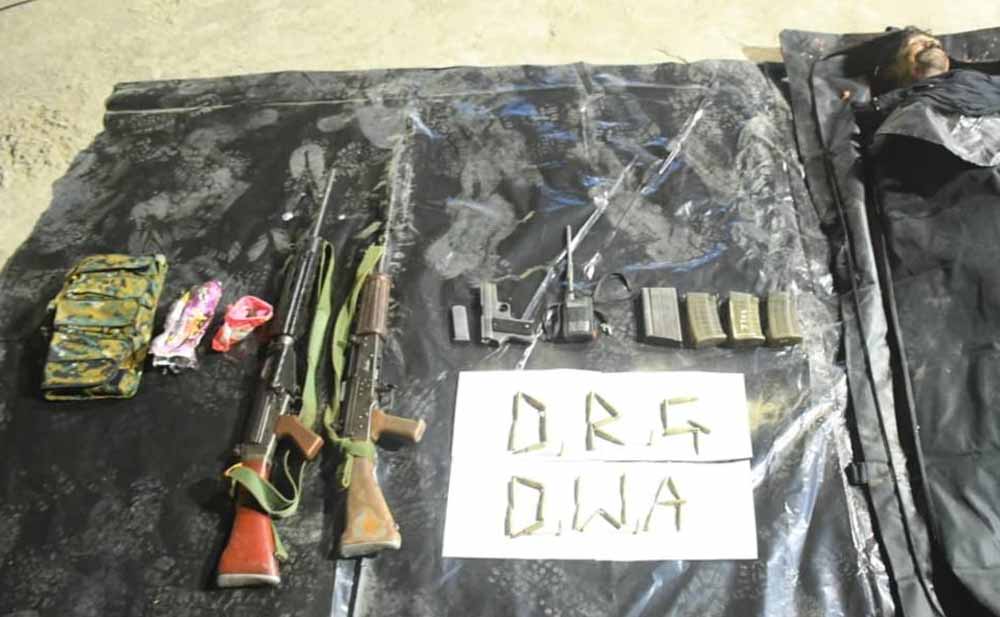 मुठभेड़ के बाद क्षेत्र की बारीकी से तलाशी लेने पर एक पुरुष सशस्त्र माओवादी का शव बरामद किया गया। साथ ही बड़ी मात्रा में हथियार और नक्सली सामग्री भी जब्त की गई। बरामद सामग्री में एक एसएलआर रायफल, एक इंसास रायफल, एक पिस्टल (मैगजीन सहित), एक वॉकी-टॉकी सेट, एसएलआर व इंसास की मैगजीन, जिंदा कारतूस, मिसफायर राउंड, खाली खोखे और अन्य सामग्री शामिल है।