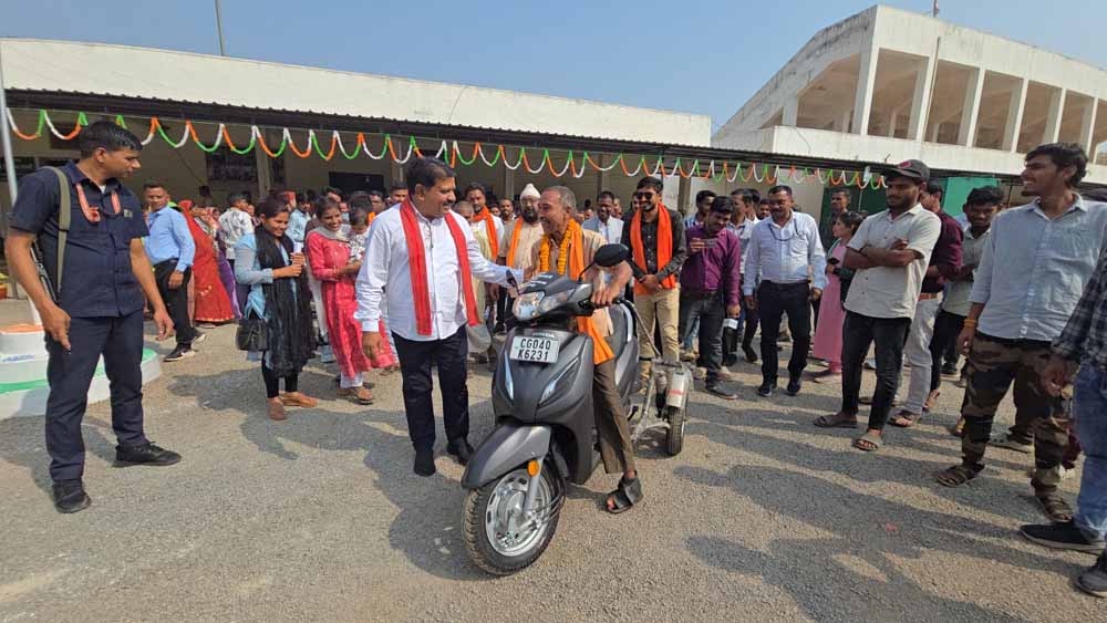 उपमुख्यमंत्री एवं कवर्धा विधायक  विजय शर्मा ने आज विधायक कार्यालय कवर्धा में दो दिव्यांग लाभार्थियों को स्कूटी का वितरण किया। इस अवसर पर उन्होंने बोड़ला विकासखंड के ग्राम मारियाटोला निवासी  विद्याधा वर्मा तथा ग्राम नेऊरगाँव निवासी  भूपेंद्र चंद्रवंशी को स्कूटी की चाबी सौंपकर उन्हें शुभकामनाएँ दीं। उपमुख्यमंत्री  शर्मा ने कहा कि छत्तीसगढ़ सरकार का उद्देश्य दिव्यांगजनों को आत्मनिर्भर बनाना और उनके दैनिक जीवन को सुगम करना है। स्कूटी मिलने से लाभार्थियों को आवागमन में सुविधा होगी तथा वे अपने कार्यों को स्वतंत्र रूप से कर सकेंगे। उन्होंने यह भी कहा कि समाज के हर वर्ग को मुख्यधारा से जोड़ना मुख्यमंत्री  विष्णु देव साय सरकार की प्राथमिकता है। इस अवसर पर पूर्व जिला पंचायत अध्यक्ष  विदेशीराम धुर्वे,  संतोष पटेल, जनपद उपाध्यक्ष कवर्धा  गणेश तिवारी, बोडला  नंद श्रीवास,  नरेंद्र मानिकपुरी,  मनीराम साहू,  अमर कुर्रे सहित जन प्रतिनिधि, क्षेत्र के नागरिक उपस्थित रहे।