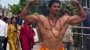 वीडियो में उसे कई महिला श्रद्धालु  देखते हुए नजर आ रही है। इस दौरान कई लोग उसकी बॉडी देखकर सेल्फी ले रहे है। रील में फिल्मी गानें भी डाले गए है। इस वीडियो को लेकर हिंदूवादी संगठन भी आक्रोशित है।