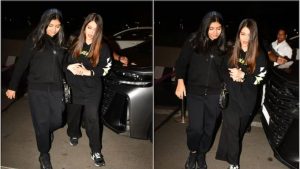 एयरपोर्ट पर अभिषेक, ऐश्वर्या और आराध्या तीनों ही काले रंग के आउटफिट में नजर आए। अभिषेक बच्चन ने ब्लैक हुडी के साथ मैचिंग कैप लगाई हुई थी, जिसमें वे काफी डैशिंग लग रहे थे। वहीं, ऐश्वर्या राय अपने सिग्नेचर स्टाइल में ऑल-ब्लैक लुक में नजर आईं। उन्होंने वहां मौजूद फोटोग्राफरों को हाथ हिलाकर अभिवादन भी किया। बेटी आराध्या भी ब्लैक आउटफिट और हेयरबैंड में काफी प्यारी लग रही थीं।
