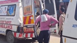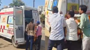 धक्का लगाने पर भी स्टार्ट नहीं हुई एंबुलेंस