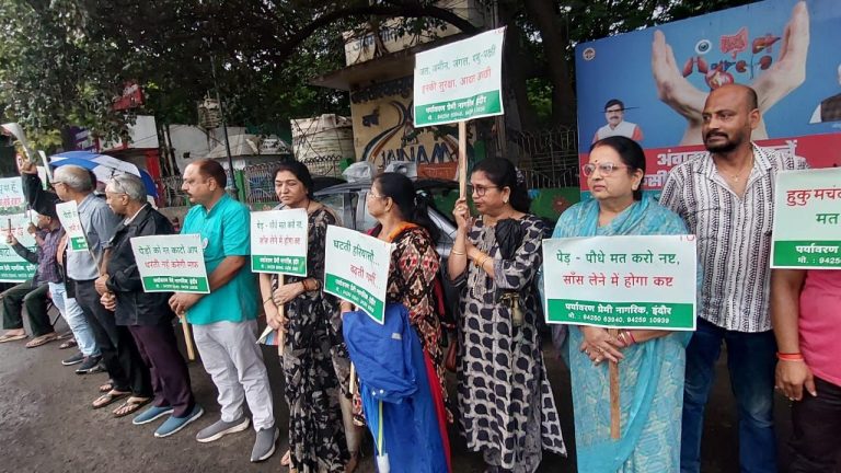 हुकुमचंद मिल परिसर के पेड़ बचाने हेतु बनी ऐतिहासिक मानव शृंखला, इंदौरवासियों ने दिया पर्यावरण संरक्षण का सशक्त संदेश