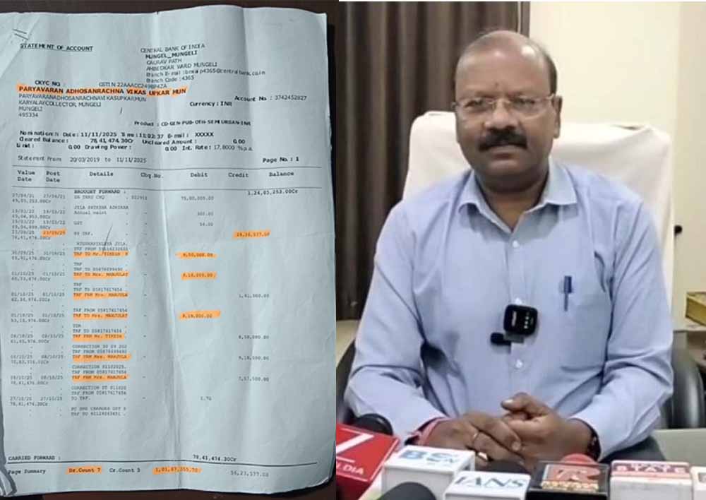 छत्तीसगढ़ के मुंगेली जिले में सरकारी खजाने में सेंधमारी का एक बेहद गंभीर मामला सामने आया है. कलेक्ट्रेट के पर्यावरण अधोसंरचना विकास उपकर खाते से लगभग 26.87 लाख रुपये की हेराफेरी की गई है. इस खुलासे के बाद जिला प्रशासन और बैंक प्रबंधन के बीच हड़कंप मच गया है.