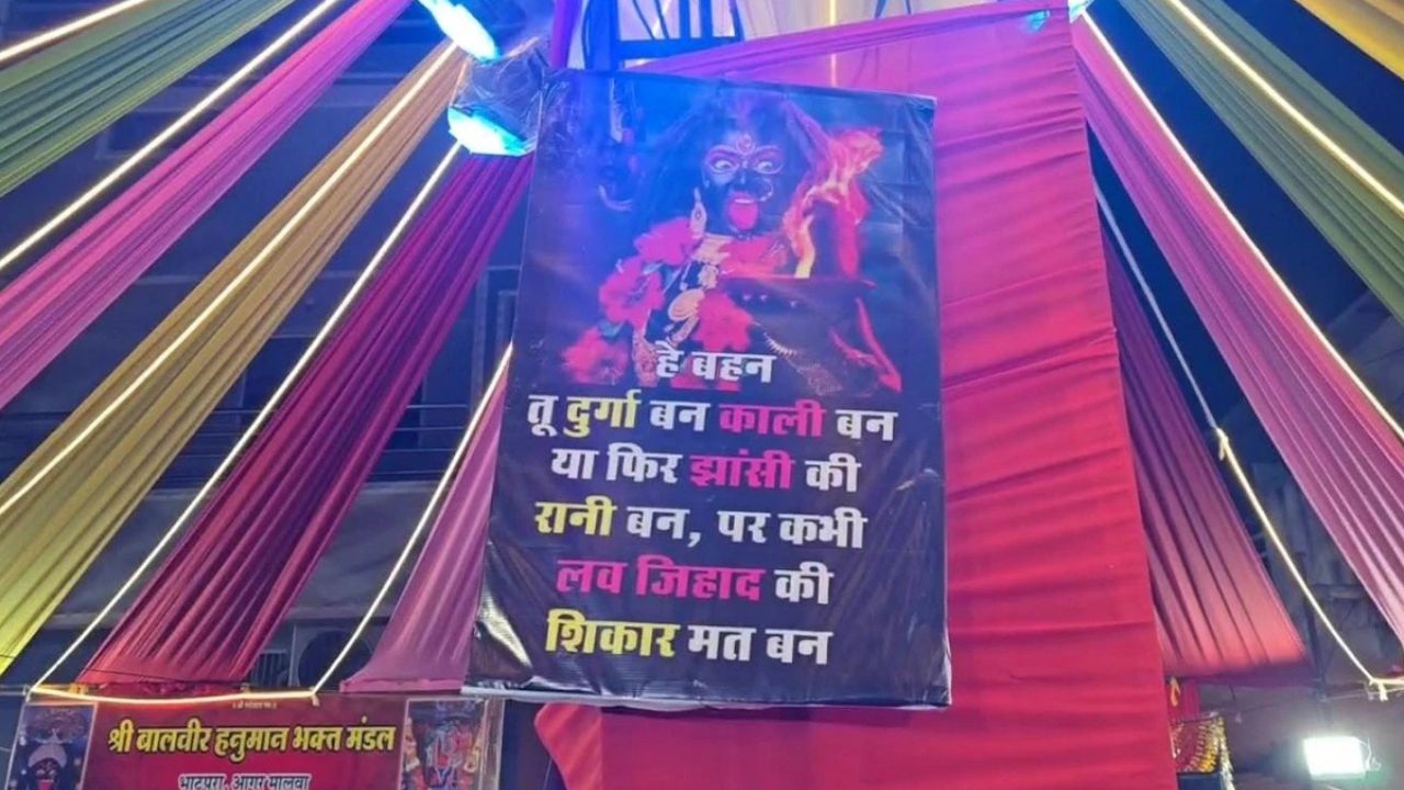 हाल ही में मध्यप्रदेश के आगर मालवा जिले में एक गरबा पंडाल चर्चा का विषय बना हुआ है। यहां गरबा आयोजित करने वाली समिति ने बैनर लगाते हुए संदेश दिया कि “बहन, तू दुर्गा बन, काली बन, झांसी की रानी बन, पर कभी लव जिहाद की शिकार मत बन।”