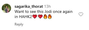 वहीं एक अन्य यूजर ने मजाकिया अंदाज में लिखा, “मिल ये लोग रहे हैं, खुशी हमें हो रही है, ऐसा क्यों।” फैंस के कमेंट्स से साफ है कि इस जोड़ी को पर्दे पर दोबारा देखने का इंतजार आज भी बरकरार है।