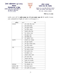 भारतीय जनता पार्टी के प्रदेश अध्यक्ष व विधायक हेमंत खण्डेलवाल जी ने राष्ट्रीय अध्यक्ष जगत प्रकाश नड्डा जी की सहमति से आज दिनांक 23-10-2025 गुरुवार को पार्टी की प्रदेश कार्यकारिणी की घोषणा संलग्न सूची अनुसार की है-
