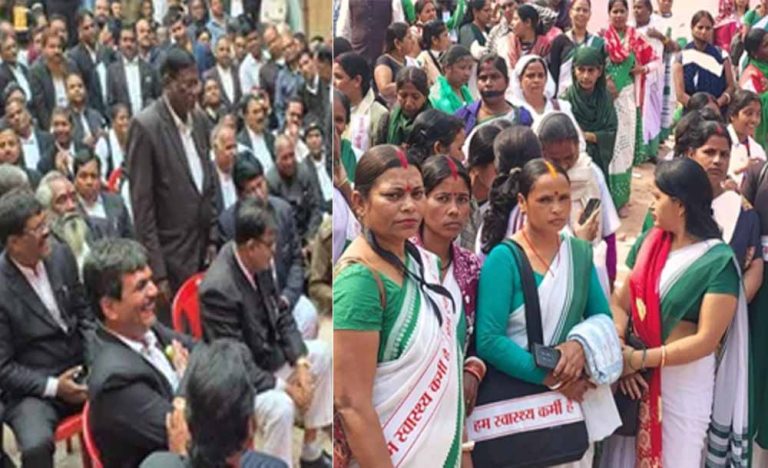 बाउंड्री वॉल विवाद में वकीलों का पेन डाउन, स्वास्थ्य कर्मियों के भी धरने पर बैठने से अस्पताल ठप