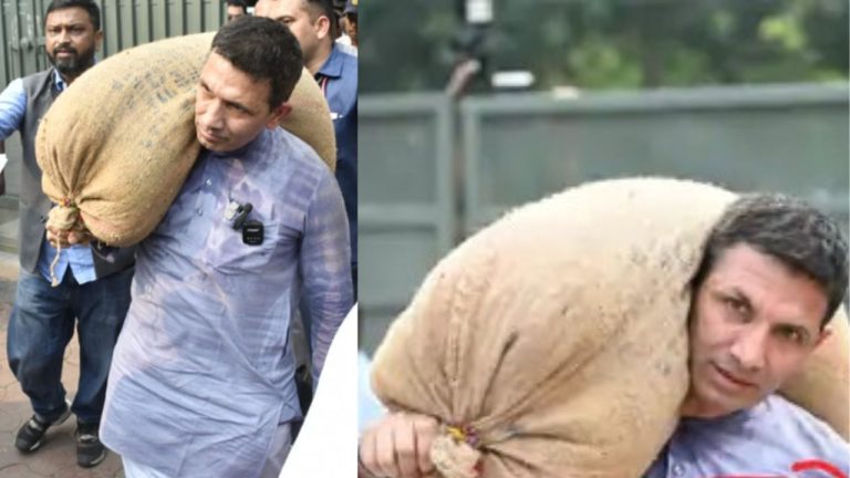 शिवराज के घर गेहूं की बोरी लेकर पहुंचे जीतू पटवारी, किसानों संग कृषि नीति के विरोध में किया जमकर प्रदर्शन