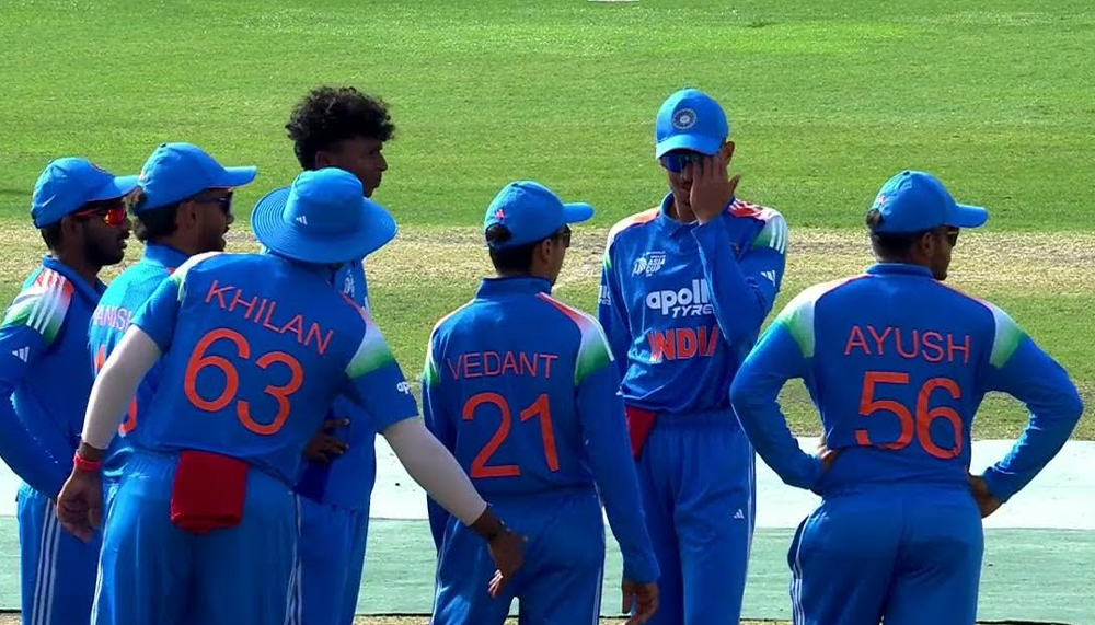 भारत को पहला झटका एरॉन जॉर्ज के रूप में लगा है। उन्हें मजाई ने पांचवे ओवर की पहली गेंद पर जॉर्ज को आउट किया। जॉर्ज ने 16 गेंदों में दो चौकों और एक छक्के की मदद से 23 रनों की पारी खलेी। उन्होंने वैभव सूर्यवंशी (19)* के साथ 41 रनों की साझेदारी की। सूर्यवंशी का साथ देने कप्तान आयुष म्हात्रे आए हैं।