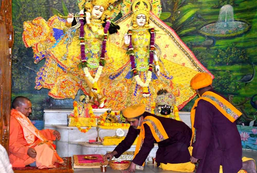 उत्तर प्रदेश के मुख्यमंत्री योगी आदित्यनाथ ने शनिवार को कान्हा की नगरी मथुरा का दौरा किया। इस दौरान उन्होंने श्रीकृष्ण जन्मभूमि मंदिर पहुंचकर भगवान श्रीकृष्ण के दर्शन किए और विधिवत पूजन-अर्चन कर श्रद्धा निवेदित की। ब्रज की पावन धरा से प्रदेशवासियों के लिए सुख, शांति और समृद्धि की कामना की।