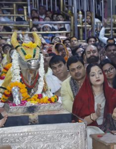 बिहार सरकार के लोक स्वास्थ्य अभियंत्रण विभाग के मंत्री संजय सिंह ने भी नंदी हॉल में बैठकर भगवान के दर्शन किए। वे स्नेहा राणा के समीप ही बैठकर आरती की दिव्यता का अनुभव करते नजर आए। मंदिर प्रशासन ने मंत्री सिंह का भी विधिवत स्वागत किया।