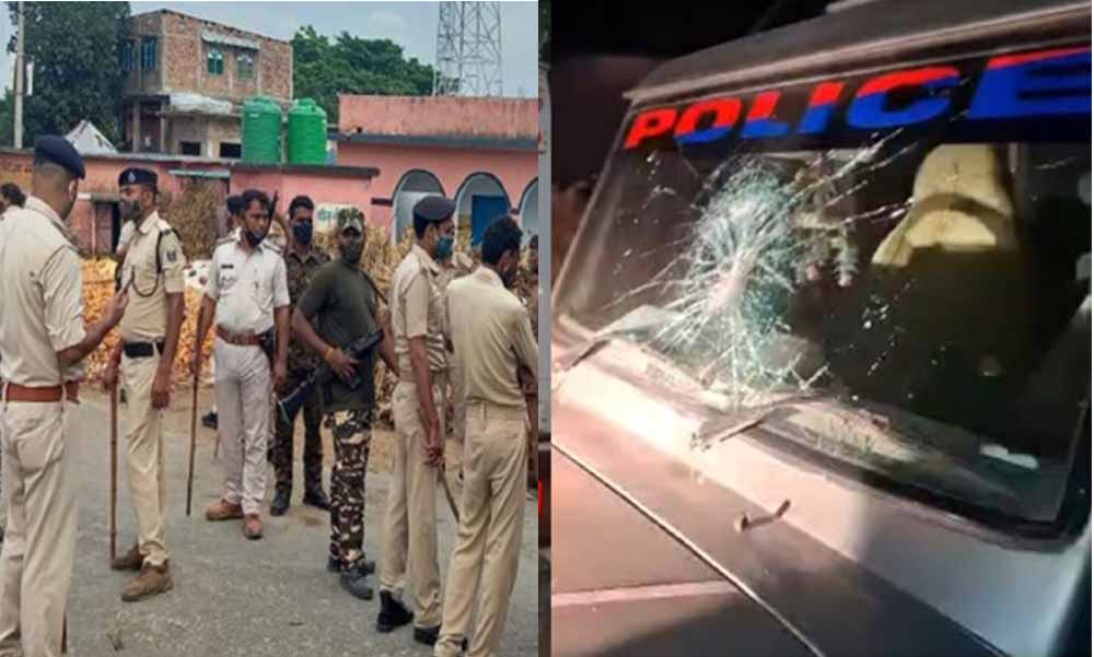 पुलिस टीम पर पथराव कर दिया