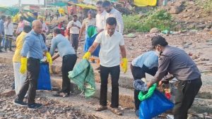 Indore News : इंदौरसंभागायुक्त डॉ. सुदाम खाड़े आज गुरुवार सुबह ओंकारेश्वर के ब्रह्मपुरी घाट पर सेवा पखवाड़े के अंतर्गत सफाई मित्रों के साथ घाटों की साफ-सफाई के लिए आयोजित कार्यक्रम में श्रमदान किया। उन्होंने नर्मदा के सौन्दर्य को बढ़ाने के लिए सफाई मित्रों का उत्साहवर्धन करते हुए उनके साथ फोटो खिंचवाये और उनसे आवश्यक वार्तालाप भी किया।