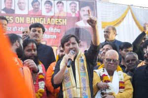 सभा को संबोधित करते हुए पवनदास महाराज ने कहा कि बांग्लादेश में हो रहे अत्याचार निंदनीय हैं और यह हिंदू समाज के धैर्य की परीक्षा है। राधे-राधे महाराज ने कहा कि अब समय आ गया है कि हिंदू समाज संगठित होकर घुसपैठ और अत्याचार के खिलाफ खड़ा हो। उन्होंने जनसंख्या संतुलन और अवैध घुसपैठ की समस्या पर भी चिंता जताई और एकजुट प्रयास की अपील की।