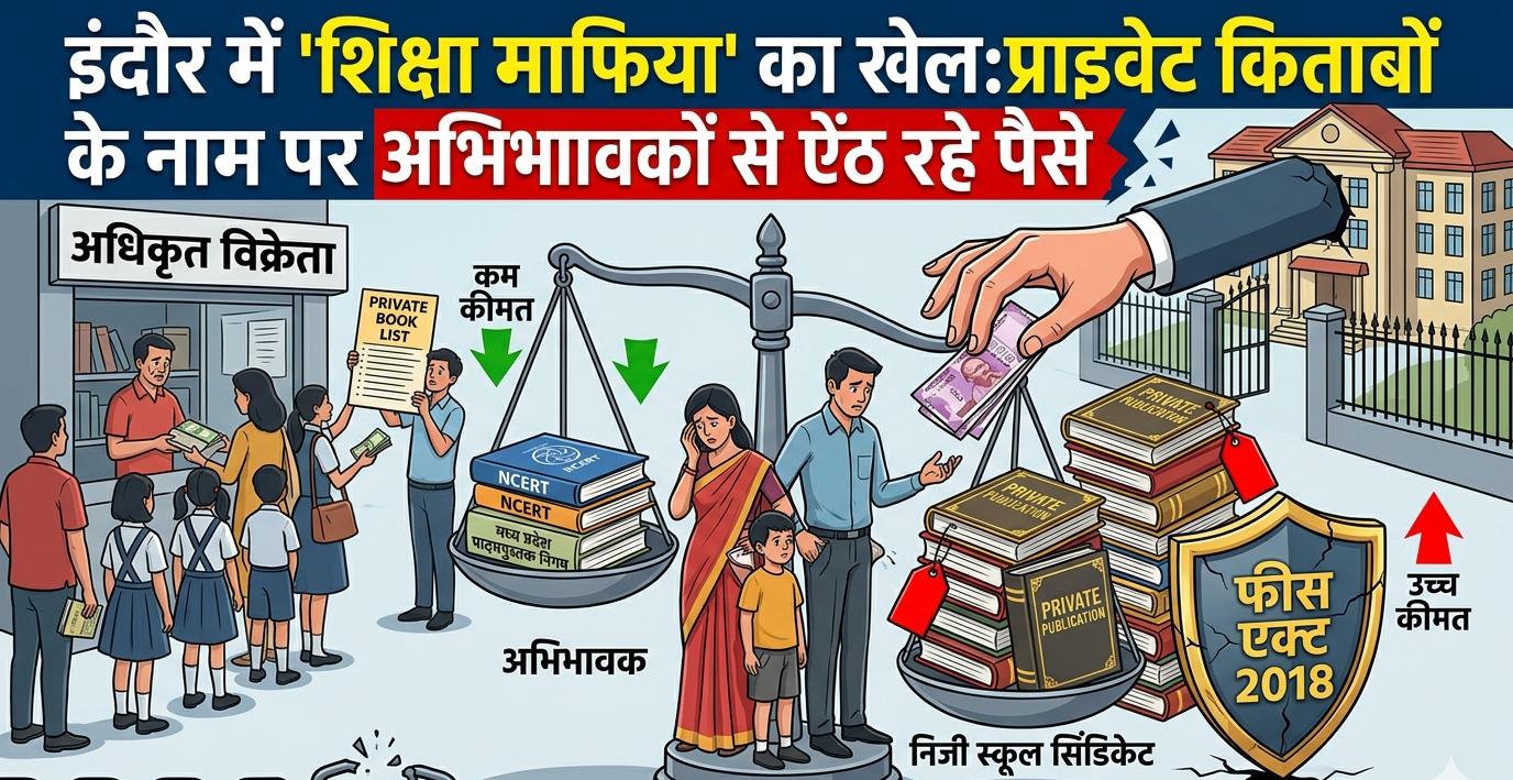 अकेले इंदौर शहर में करीब 70 से 80 ऐसे बड़े स्कूल हैं, जहाँ छात्रों की संख्या 2000 से 3000 के बीच है। खेल इतना शातिर है कि NCERT और मध्य प्रदेश पाठ्यपुस्तक निगम की सस्ती किताबों के बजाय प्राइवेट पब्लिकेशन की महंगी किताबें अनिवार्य कर दी गई हैं। यदि एक कक्षा में 50 बच्चे हैं और उनमें सिर्फ दो अतिरिक्त प्राइवेट किताबें भी जोड़ दी जाएं, तो मुनाफे का यह गणित करोड़ों में पहुँच जाता है।