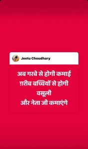 विधायक पर पार्टी के ही कार्यकर्ता ने गंभीर आरोप लगाए है। सोशल मीडिया पर भाजपा जिला संयोजक जीतू चौधरी ने लिखा है कि अब गरबे से कमाई होगी। गरीब बच्चियों से वसूली होगी। इसके साथ यह तक लिखा है कि नेताजी इस गरबे से कमाएंगे