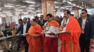 पूजा-पाठ के बाद केंद्रीय मंत्री और मुख्यमंत्री महाकाल मंदिर के अन्न क्षेत्र पहुंचे। यहां उन्होंने न केवल श्रद्धालुओं को अपने हाथों से प्रसादी वितरित की, बल्कि स्वयं भी पंगत में बैठकर प्रसाद ग्रहण किया। इस दौरान मध्य प्रदेश के प्रभारी महेंद्र सिंह भी उनके साथ मौजूद रहे।