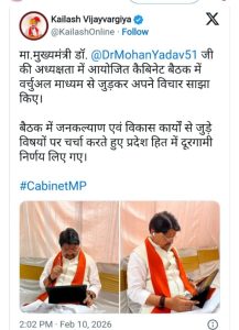 कैबिनेट बैठक की तस्वीरें सामने आने के बाद जब विपक्ष और मीडिया में उनकी अनुपस्थिति पर सवाल उठने लगे, तब दोपहर करीब 2 बजे मंत्री विजयवर्गीय ने एक और अपडेट साझा किया।