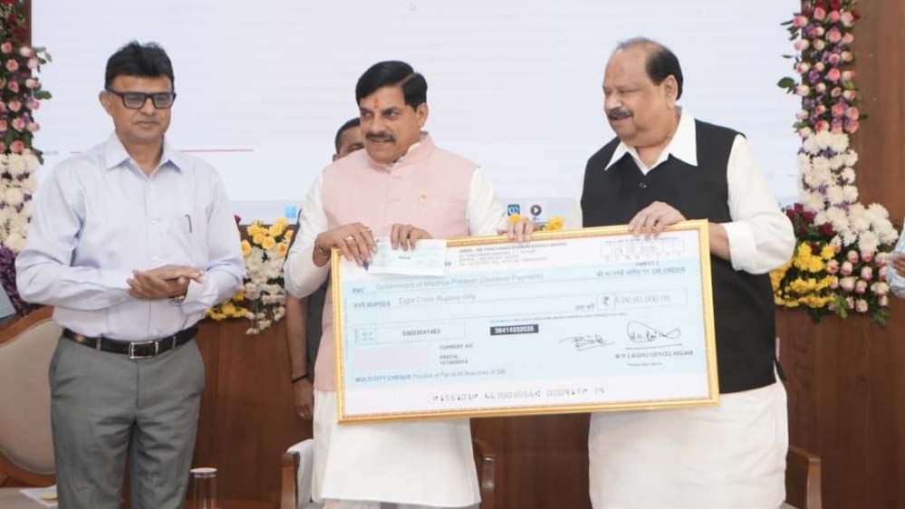 तदानुसार मुख्यमंत्री निवास में आयोजित कार्यक्रम में माननीय मंत्री, सूक्ष्म, लघु और मध्यम उद्यम मंत्रालय म.प्र. शासन एवं माननीय अध्यक्ष, मध्यप्रदेश लघु उद्योग निगम चेतन्य काश्यप द्वारा मध्यप्रदेश शासन के यशस्वी मुख्यमंत्री माननीय डॉ. मोहन यादव जी को राशि रू. 8.00 करोड़ अंतरिम लाभांश का चेक प्रदान किया गया।
