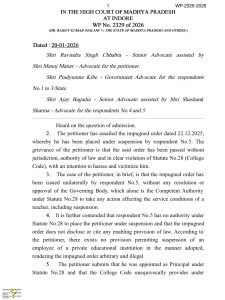 माहेश्वरी कॉलेज के प्राचार्य डॉ. राजीव कुमार झालानी को हाईकोर्ट से बड़ी राहत मिली है। न्यायालय ने कॉलेज प्रबंधन द्वारा जारी किए गए उनके निलंबन आदेश पर स्टे (रोक) लगा दिया है। कोर्ट ने मामले की सुनवाई करते हुए प्रबंधन की कार्रवाई को खारिज कर दिया और डॉ. झालानी को तत्काल प्रभाव से महाविद्यालय में अपना पदभार पुनः ग्रहण करने का आदेश दिया है।