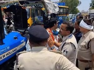 ट्रैक्टर लेकर विधानसभा पहुंचे विधायक, बैरिकेड्स पर बवाल