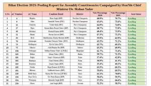 उन्होंने अपने भाषणों में अक्सर यह संदेश देने की कोशिश की कि बीजेपी सभी जातियों और समुदायों के विकास के लिए काम करती है। रुझानों से स्पष्ट है कि जिन इलाकों में मोहन यादव ने सभाएं कीं, वहां NDA उम्मीदवारों को फायदा मिलता दिख रहा है।