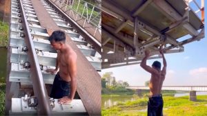 Viral Reel : सोशल मीडिया पर मशहूर होने की चाह में युवा किस हद तक अपनी जान जोखिम में डाल रहे हैं, इसका एक और खतरनाक उदाहरण सामने आया है। हाल ही में एक वीडियो वायरल हो रहा है, जिसमें एक युवक रेलवे ब्रिज के नीचे लटककर पुल-अप्स करता दिख रहा है।