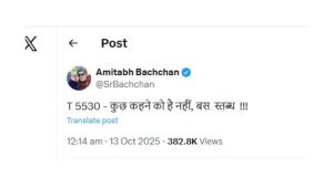 рдЗрд╕реА рдмреАрдЪ рдмрд┐рдЧ-рдмреА рдЕрдорд┐рддрд╛рдн рдмрдЪреНрдЪрди рдиреЗ рдПрдХ рдПрдХреНрд╕ рдкрд░ рдПрдХ рдкреЛрд╕реНрдЯ рдХрд┐рдпрд╛, рдЬрд┐рд╕рд╕реЗ рдРрд╕рд╛ рд▓рдЧ рд░рд╣рд╛ рд╣реИ рдХрд┐ рдЙрдиреНрд╣реЛрдВрдиреЗ рднреА рдЙрд╕ рдмрдЪреНрдЪреЗ рдХреА рд╣рд░рдХрдд рдкрд░ рд░рд┐рдПрдХреНрд╢рди рджрд┐рдпрд╛ рд╣реИред рдПрдХреНрд╕ рдкрд░ рдмрд┐рдЧ рдмреА рдиреЗ рд▓рд┐рдЦрд╛ – “рдХреБрдЫ рдХрд╣рдиреЗ рдХреЛ рд╣реИ рдирд╣реАрдВ, рдмрд╕ рд╕реНрддрдмреНрдз” !!!