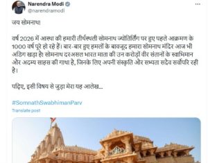 पीएम मोदी ने इस अवसर को ‘अटूट आस्था के 1000 साल’ करार देते हुए कहा कि सोमनाथ मंदिर केवल एक धार्मिक स्थल नहीं, बल्कि भारत माता की उन करोड़ों संतानों के स्वाभिमान और अदम्य साहस की गाथा है, जिनके लिए अपनी संस्कृति सदैव सर्वोपरि रही है।