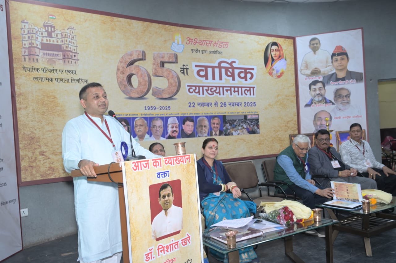 अभ्यास मंडल द्वारा आयोजित 65वीं व्याख्यान माला में प्रदेश भाजपा के प्रदेश उपाध्यक्ष और युवा आयोग के पूर्व अध्यक्ष डॉ. निशांत खरे ने युवा, परिवार और देश के भविष्य से जुड़े महत्वपूर्ण मुद्दों पर विस्तृत रूप से अपने विचार रखे। उन्होंने कहा कि यदि परिवार मजबूत रहेगा और टूटने से बचेगा, तभी युवाओं में संस्कार टिके रहेंगे, और संस्कारशील युवा ही श्रेष्ठ भारत के निर्माण में महत्वपूर्ण भूमिका निभा सकते हैं।