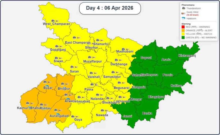 बिहार में 6 अप्रैल से मौसम लेगा यू-टर्न, आंधी-बारिश और ठनका गिरने का ऑरेंज अलर्ट जारी