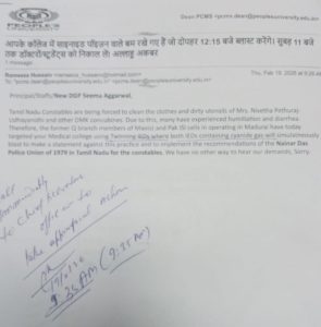 संदेश में तमिलनाडु पुलिसकर्मियों के कथित शोषण, कुछ नामों और पुराने मामलों का भी जिक्र किया गया। साथ ही यह चेतावनी लिखी गई थी कि अगर विस्फोटक सक्रिय न हुए तो हमलावर परिसर में घुसकर आत्मघाती कार्रवाई कर सकते हैं।