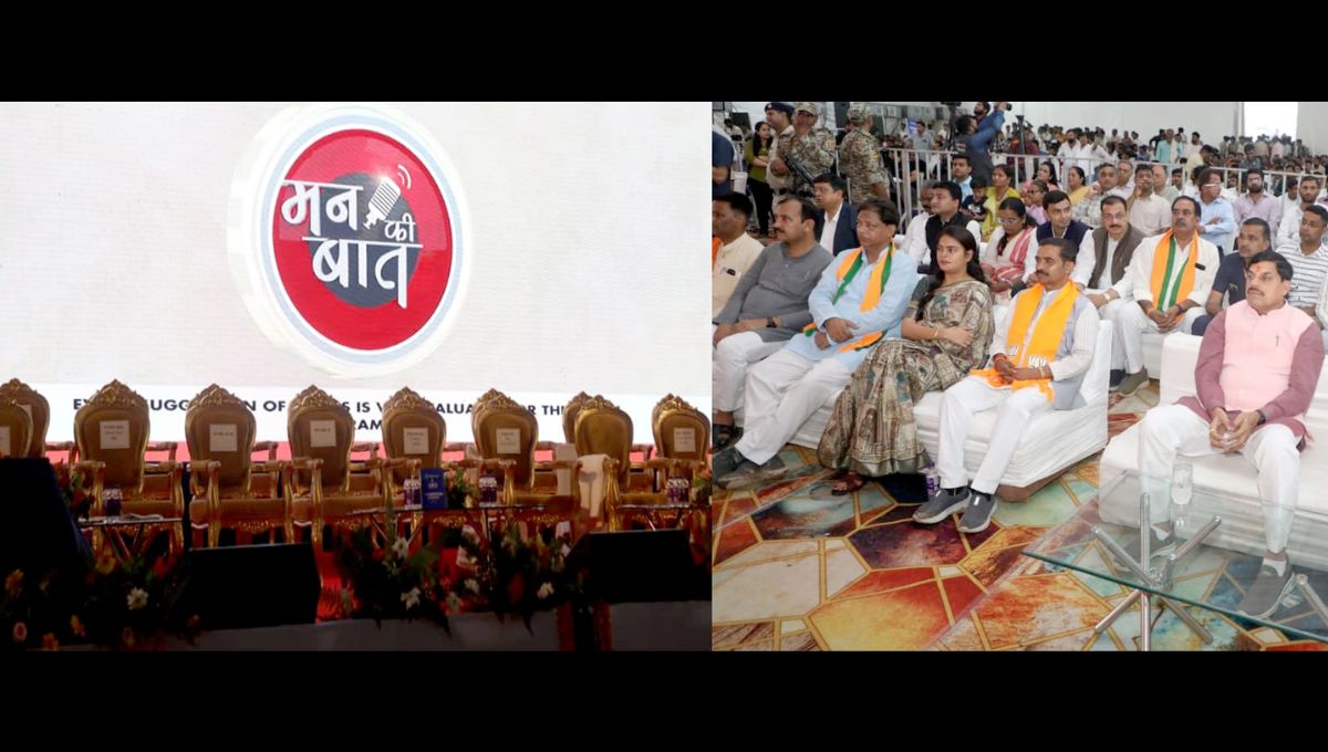 प्रधानमंत्री नरेन्द्र मोदी ने रविवार को आकाशवाणी के माध्यम से देशवासियों से ‘मन की बात’ कार्यक्रम में संवाद किया। इस अवसर पर राज्यपाल पटेल और मुख्यमंत्री डॉ. मोहन यादव उज्जैन में सामूहिक विवाह सम्मेलन स्थल पर टेलीविजन के माध्यम से कार्यक्रम को देखा और प्रधानमंत्री के संदेश सुने।