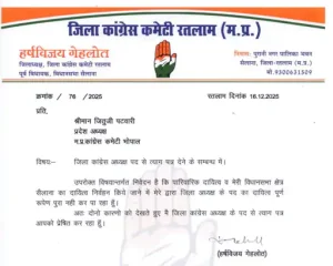 दिलचस्प बात यह है कि प्रदेश कांग्रेस अध्यक्ष जीतू पटवारी ने अपना दो साल का कार्यकाल पूरा करते हुए मंगलवार को ही प्रदेश भर में 780 ब्लॉक और उप-ब्लॉक अध्यक्षों की नियुक्तियां की थीं। संगठन को मजबूत करने की इस कवायद के ठीक अगले ही दिन रतलाम जिला अध्यक्ष का इस्तीफा सामने आ गया। इसे लेकर पार्टी के भीतर सुगबुगाहट तेज हो गई है।