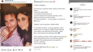 सबा ने इंस्टाग्राम पर सैफ और करीना की कुछ अनदेखी और खूबसूरत तस्वीरें शेयर करते हुए दोनों को शादी की सालगिरह की बधाई दी। उन्होंने पोस्ट के कैप्शन में लिखा, “भाई, आप हमेशा मेरे प्यारे भाई रहोगे। आप दोनों को सालगिरह की ढेर सारी मुबारकबाद। एक-दूसरे को ऐसे ही प्यार से देखते रहो। उस शादी की तस्वीर में झलकता प्यार आज भी उतना ही गहरा है। प्यार और दुआएं हमेशा रहेंगी।”