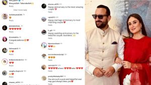इंस्टाग्राम पर फैंस करीना और सैफ को एनवर्सरी पर बधाईयां दे रहे है। करीना और सैफ की जो तस्वीरें सबा पटौदी ने शेयर की है, वो तेजी से वायरल हो रही है। सैफ और करीना की जोड़ी बॉलीवुड की सबसे चर्चित और पसंदीदा जोड़ियों में से एक मानी जाती है। सबा के इस पोस्ट पर फैंस ने भी कपल को जमकर बधाइयां दीं और उनकी केमिस्ट्री की तारीफ की।