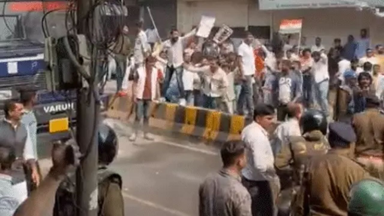 भोपाल में बैरिकेडिंग के बीच नारेबाजी