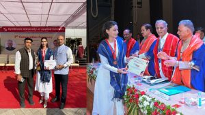 Indore News : सिम्बायोसिस यूनिवर्सिटी ऑफ़ एप्लाइड साइंसेज़ (SUAS), इंदौर के दीक्षांत समारोह में छात्रा दिशा सूरी ने अपनी असाधारण प्रतिभा का प्रदर्शन करते हुए विश्वविद्यालय का सर्वोच्च सम्मान ‘चांसलर्स गोल्ड मेडल’ अपने नाम किया। बुधवार को आयोजित इस भव्य समारोह में उन्हें यह प्रतिष्ठित पदक मध्य प्रदेश के उच्च शिक्षा मंत्री श्री इंदर सिंह परमार और कौशल विकास मंत्री गौतम टेटवाल ने संयुक्त रूप से प्रदान किया।