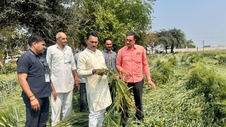 सांवेर में बारिश-तेज हवाओं से गिरी गेहूं की फसलें, मंत्री तुलसीराम सिलावट ने किया प्रभावित क्षेत्रों का दौरा