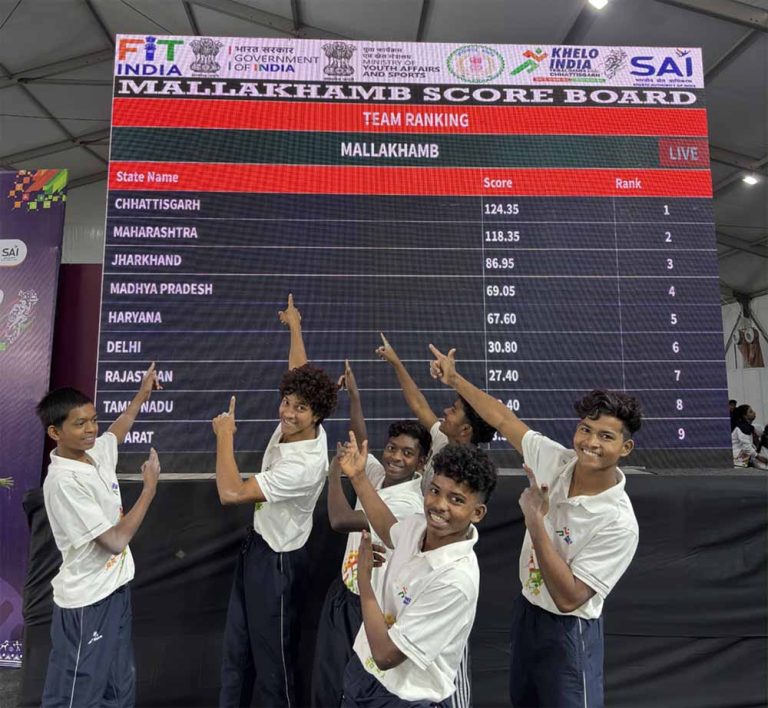 मल्लखंभ प्रतियोगिता के प्रथम दिन छत्तीसगढ़ की पुरूष टीम 124.35 अंक के साथ रही विजेता
