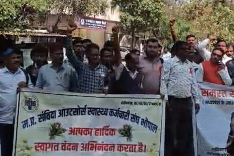 भोपाल में 30 हजार आउटसोर्स स्वास्थ्य कर्मियों का प्रदर्शन, जेपी परिसर में जुटे कर्मचारी, हड़ताल से स्वास्थ्य सेवाएं प्रभावित