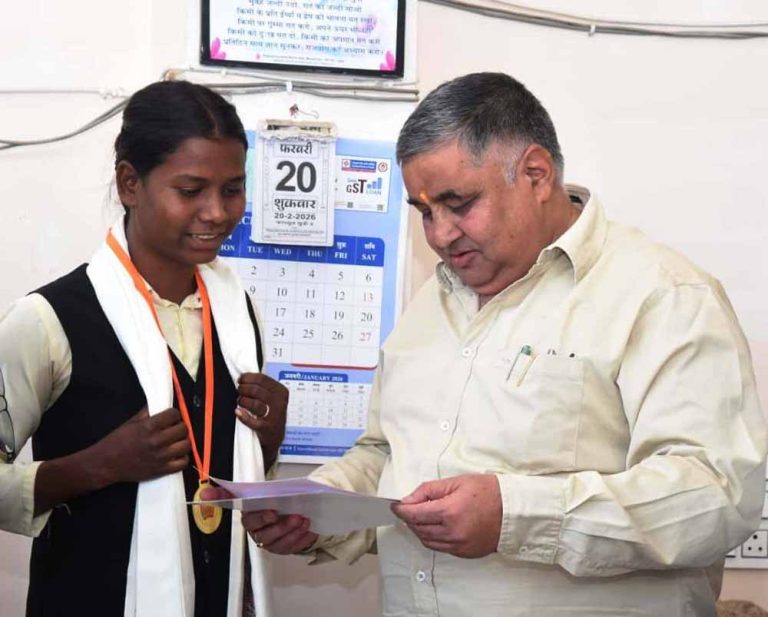 राज्य स्तर पर चमकी छात्रा सुधा सिंह: हैमर थ्रो में तीसरा स्थान, पर्यटन मंत्री राजेश अग्रवाल ने किया सम्मान