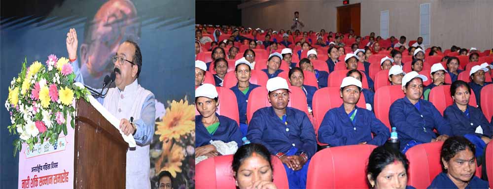 महिलाएं ईश्वर की अनुपम कृति हैं। ईश्वर ने उन्हें विशेष शक्तियां और क्षमताएं दी हैं। महिलाओं ने अपनी लगन, मेहनत और काबिलियत से हर क्षेत्र में अपना स्थान बनाया है। हर क्षेत्र में उपलब्धियां और ऊंचाईयां हासिल की हैं। माताओं व बहनों का सम्मान एवं विशेष स्थान प्राचीन काल से हमारी संस्कृति और परंपरा में है। उप मुख्यमंत्री तथा नगरीय प्रशासन एवं विकास मंत्री अरुण साव ने नारी शक्ति सम्मान समारोह में ये विचार व्यक्त किए। उन्होंने नगरीय प्रशासन एवं विकास विभाग द्वारा आज रायपुर के शासकीय मेडिकल कॉलेज ऑडिटोरियम में आयोजित समारोह में स्वच्छता, स्वावलंबन और सशक्तीकरण के लिए उत्कृष्ट कार्य करने वाली स्वच्छता दीदियों, महिला हितग्राहियों एवं स्वसहायता समूहों की महिलाओं को सम्मानित किया।