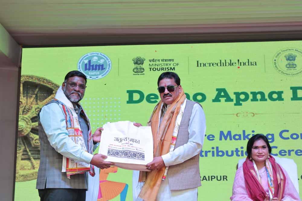 भारत सरकार के पर्यटन मंत्रालय के क्षेत्रीय कार्यालय इंडिया टूरिज्म, मुंबई द्वारा स्टेट इंस्टीट्यूट ऑफ होटल मैनेजमेंट, रायपुर (एसआईएचएम) के सहयोग से ‘देखो अपना देश’ ब्रोशर निर्माण प्रतियोगिता, पुरस्कार वितरण समारोह एवं पर्यटन शिक्षा प्रदर्शनी का भव्य आयोजन किया गया। कार्यक्रम का उद्देश्य युवाओं में भारत के विविध पर्यटन स्थलों के प्रति जागरूकता बढ़ाना तथा पर्यटन एवं आतिथ्य के क्षेत्र में उपलब्ध करियर अवसरों से उन्हें परिचित कराना रहा।