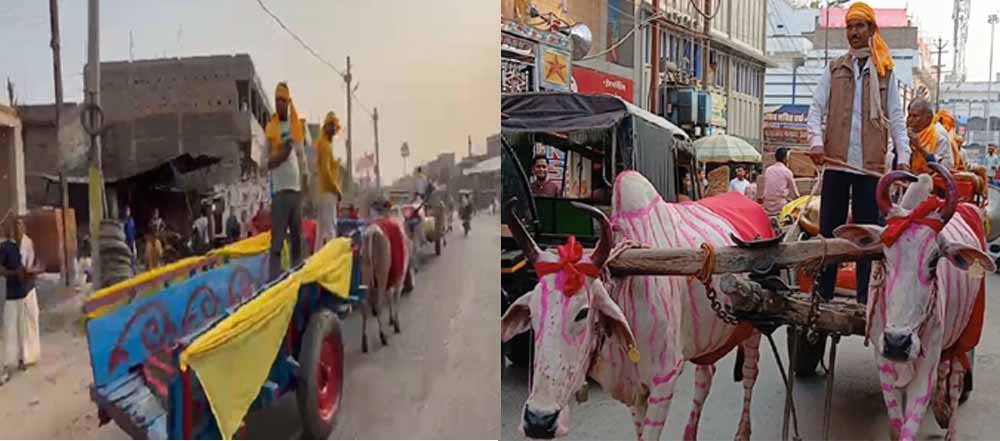 शहर की सड़कों पर बुधवार की शाम कुछ अलग ही था। न डीजे की कानफोड़ू आवाज, न रोशनी की चकाचौंध, न लग्जरी गाड़ियों की कतार। अगर कुछ था तो बैलों की सधी हुई चाल, लकड़ी की बैलगाड़ियों की मद्धिम चरमराहट और लोकगीतों की कोमल तान। यह नजारा देख हर राहगीर ठिठक गया, मोबाइल कैमरे निकल आए और एक ही सवाल गूंजने लगा, अब भला बैलगाड़ी से भी कोई बरात जाता है?