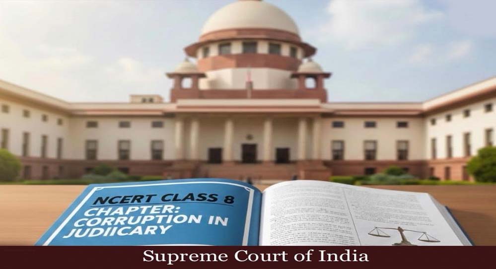 राष्ट्रीय शैक्षिक अनुसंधान और प्रशिक्षण परिषद (NCERT) की कक्षा 8 की एक पाठ्यपुस्तक में ‘न्यायपालिका में करप्शन’ से जुड़ा एक अध्याय शामिल करने को लेकर सुप्रीम कोर्ट ने स्वतः संज्ञान लेकर सुनवाई हुई. इस बेंच में चीफ जस्टिस डीवाई जाधव के स्थान पर चीफ जस्टिस सूर्यकांत और जस्टिस जॉयमाल्या बागची और विपुल मनुभाई पंचोली शामिल हैं.