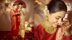 इंस्टाग्राम पर कपल ने अपनी तस्वीरें शेयर करते हुए एक दूसरे के लिए कुछ प्यारे मैसेज भी लिखे। एक्ट्रेस ने खूब सज-धज कर पति की लंबी उम्र के लिए पूरे रीत-रिवाजों के साथ करवा चौथ का व्रत रखा। लाल रंग के सूट में हिना बेहद खूबसूरत लग रही है।