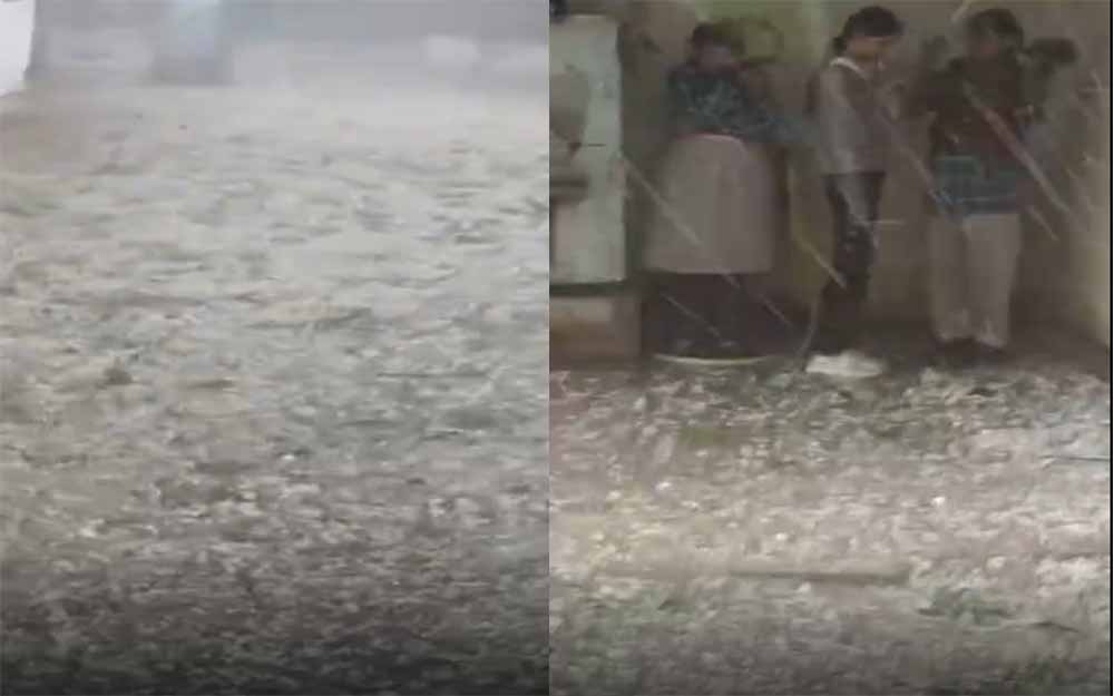 हालात कुछ ऐसे हो गए कि शहर के मुरार, आनंद नगर, बहोड़ापुर, विनय नगर समेत सिटी सेंटर इलाकों में इतनी अधिक ओलावृष्टि हुई कि वहां सफेद चादर पसर गई. कश्मीर जैसा मंजर दिखाई देने लगा. पद्मा राजे कन्या हायर सेकेंडरी स्कूल का दृश्य देखें:-