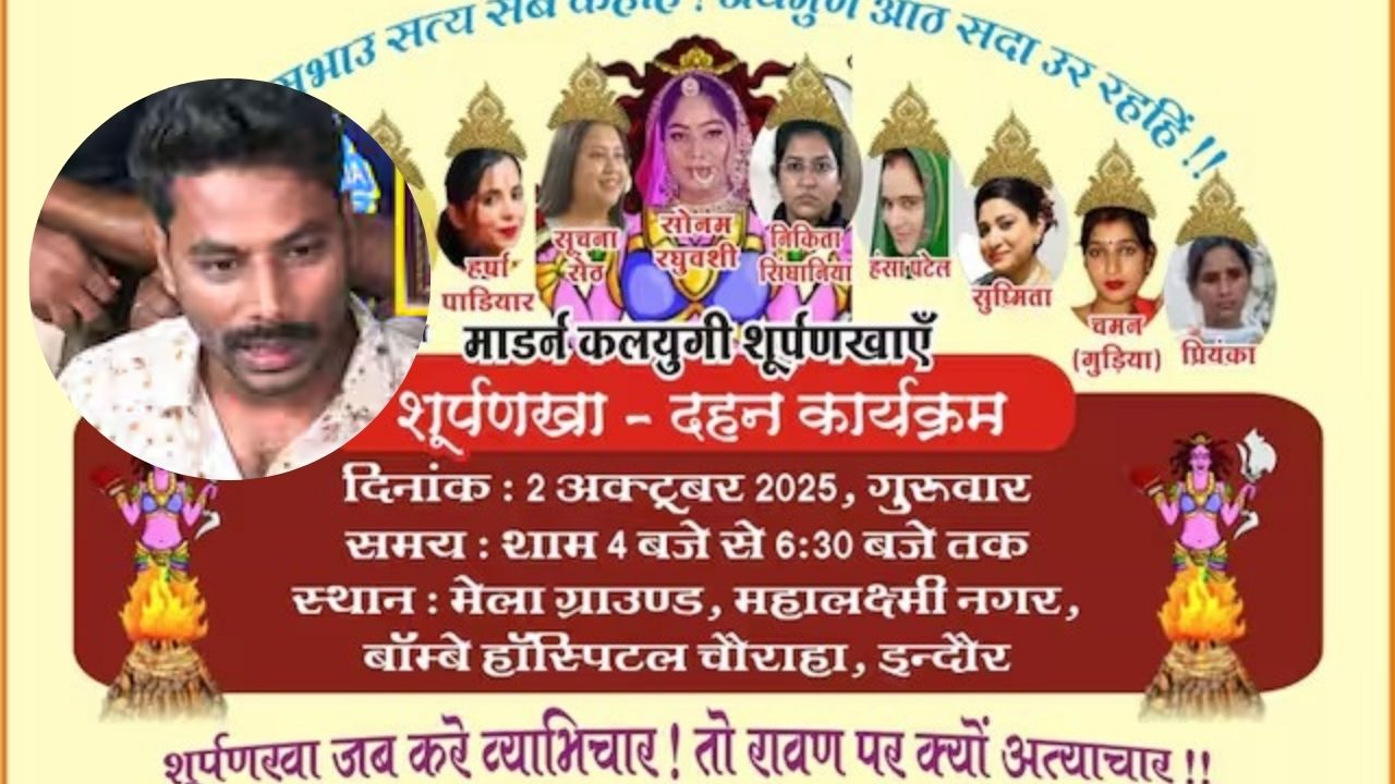 इंदौर की सोनम रघुवंशी पर पति राजा रघुवंशी की हत्या का आरोप लगा है। इसलिए शूर्पणखा के 11 चेहरों के पुतले में एक उसका चेहरा भी संस्था ने लगाया है। वहीं इस पर सोनम रघुवंशी के भाई गोविंद रघुवंशी ने अपनी बहन के चेहरे को लेकर आपत्ति जताई है। गोविंद ने इंदौर कलेक्टर शिवम वर्मा को शिकायत करते हुए इस आयोजन पर रोक लगाने की मांग की है।