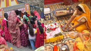 आज गुरूवार को ऋषि पंचमी के अवसर पर उज्जैन में महिलाएं और युवतियां शिप्रा नदी के तट पर रामघाट पर पूजन के लिए पहुंची। महिलाओं ने आंधी-झाड़े के साथ स्नान किया और सप्तऋषि का पूजन किया। आपको बता दें कि बारिश के चलते इन दिनों शिप्रा नदी का जलस्तर ऊपर प्लेटफॉर्म तक पहुंच गया है, जिससे महिलाओं ने प्लेटफॉर्म पर मंदिर में पूजन किया।